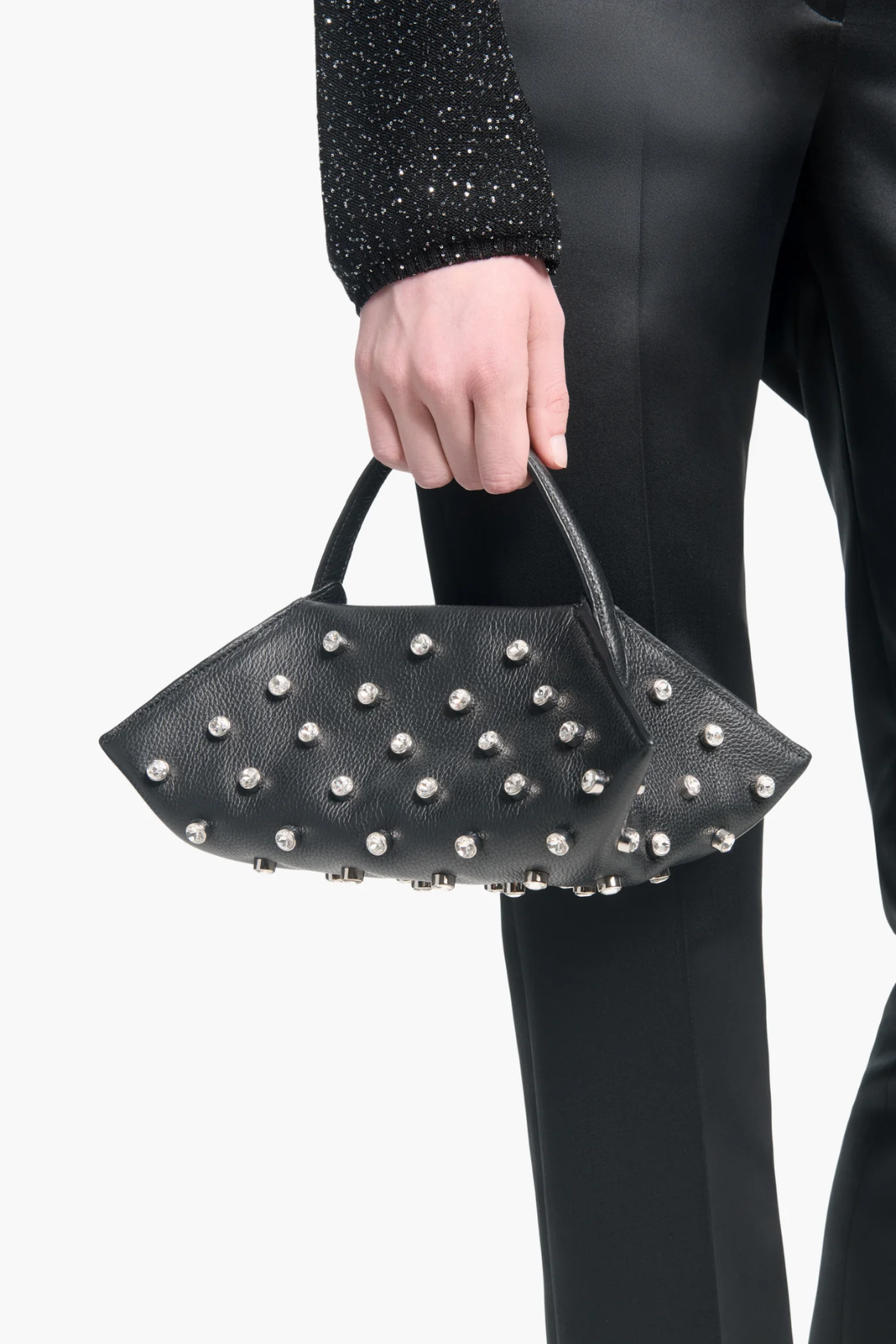 The Origami Baguette bag is an evolution of a signature style inspired by the ancient paper folding art. The slimmed down shape is made from smooth leather adorned with delicate crystal embellishments.