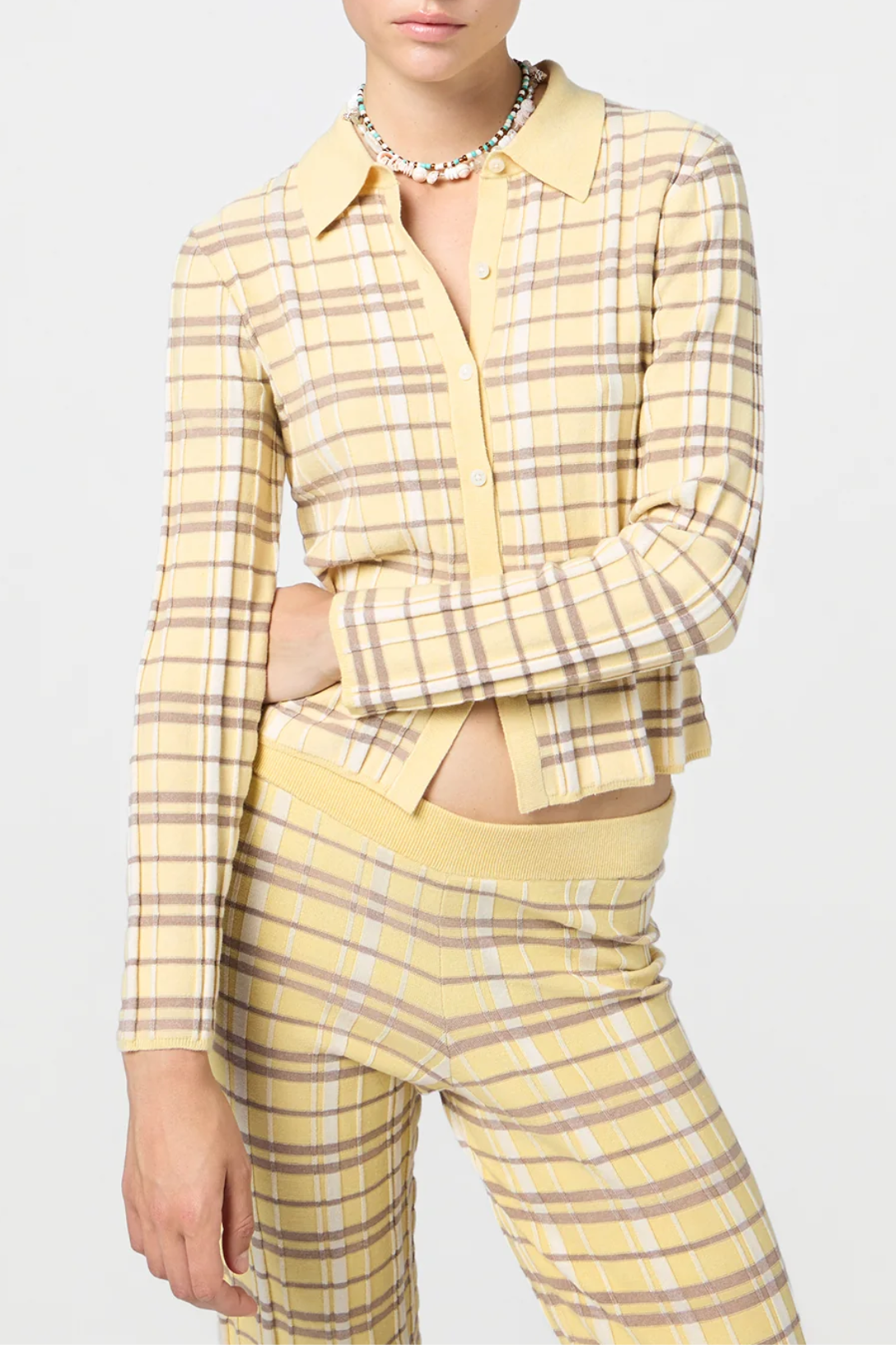 Light-weight rib plaid Elle shirt.