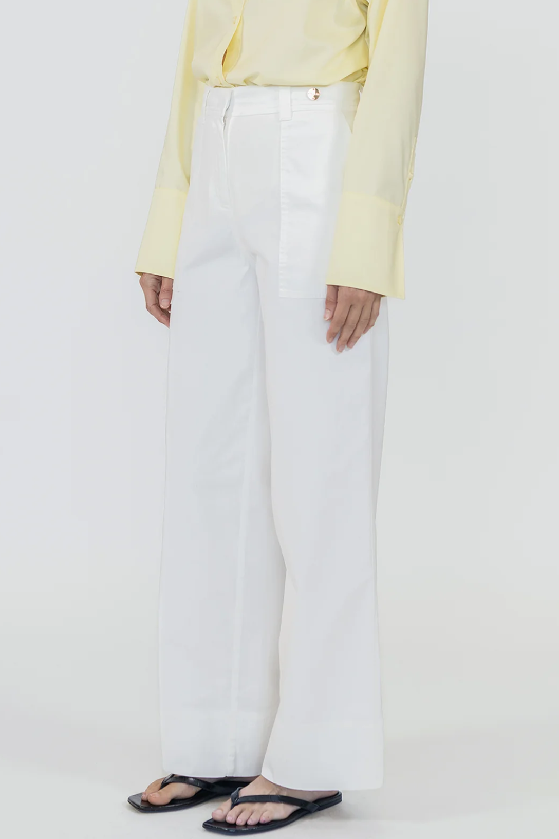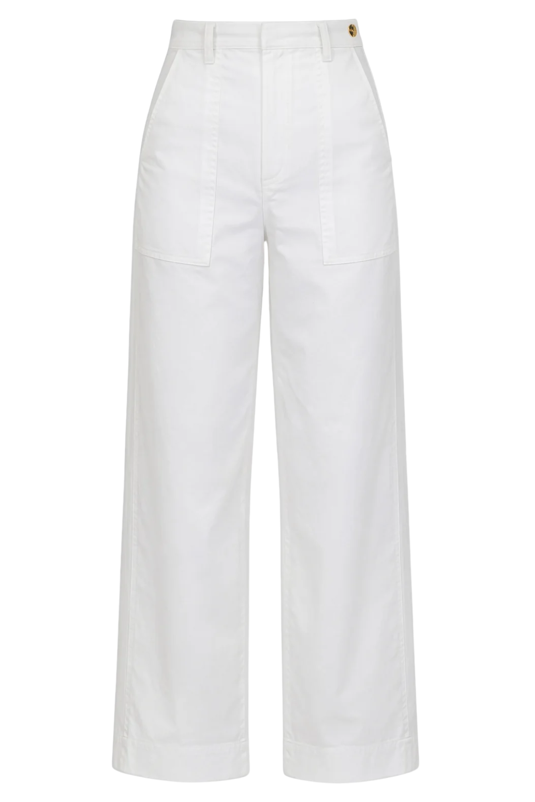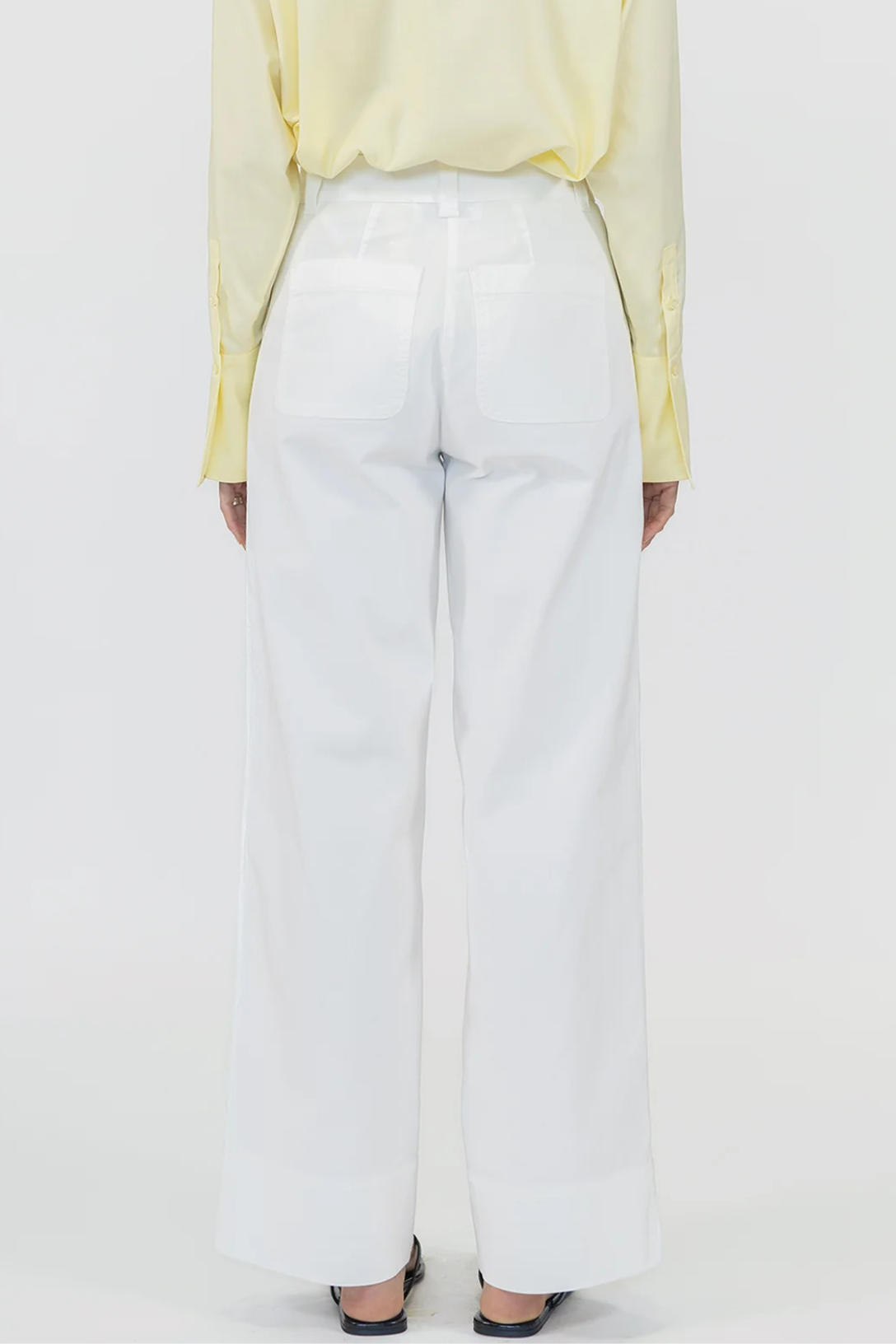 The sailor is a relaxed fitting, mid-rise pant with a casual attitude. The easy fit features a wide leg, patch pockets and double needle topstitching detail. Made in a mid-weight cotton twill that has been washed for softness and nuance.
