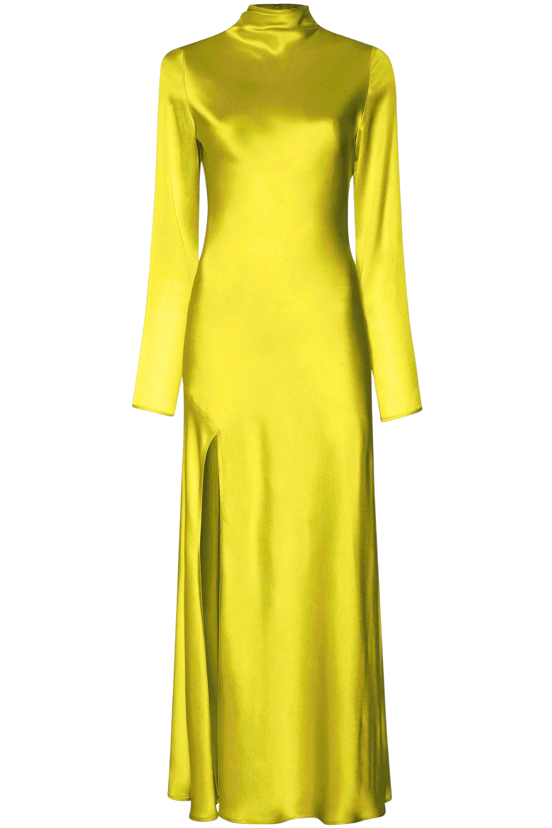 Long sleeve bias dress in luxurious doubleface satin fabrication. This style is among the bestselling and can easily take you from season to season.