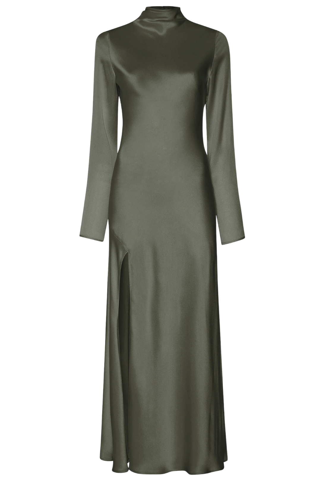 LAPOINTE's bestselling long sleeve bias dress in luxurious double face satin. Features slit at leg and invisible zip closure at center back.