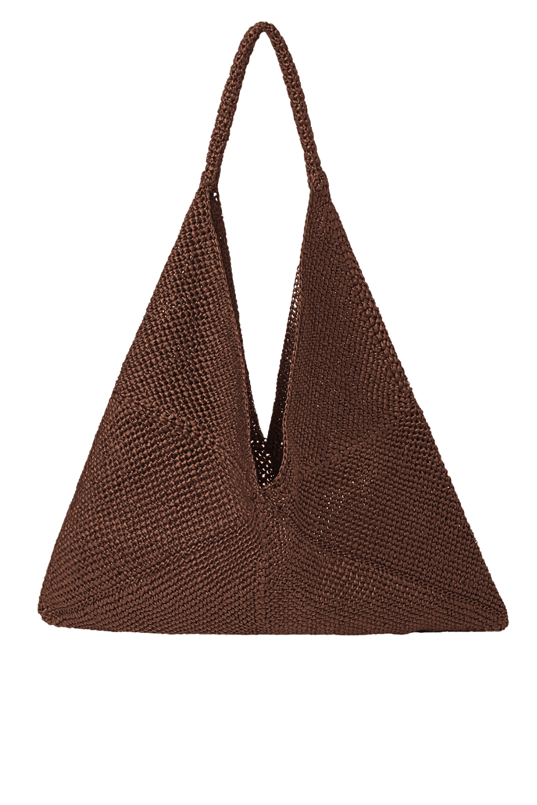 The Sid Bag is crafted from raffia in a dark brown hue. This spacious shoulder bag features a geometrically structured shape with a relaxed slouch, easily transitioning from a shoulder carry to a bold, folded clutch look. The woven tubular handle and unlined construction keeps it lightweight and effortless.