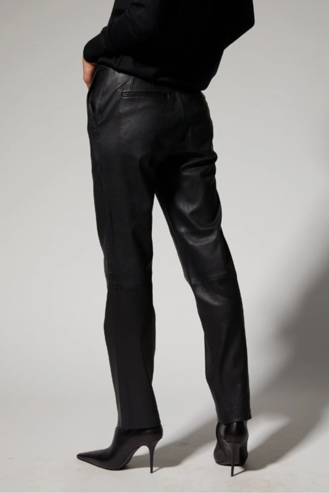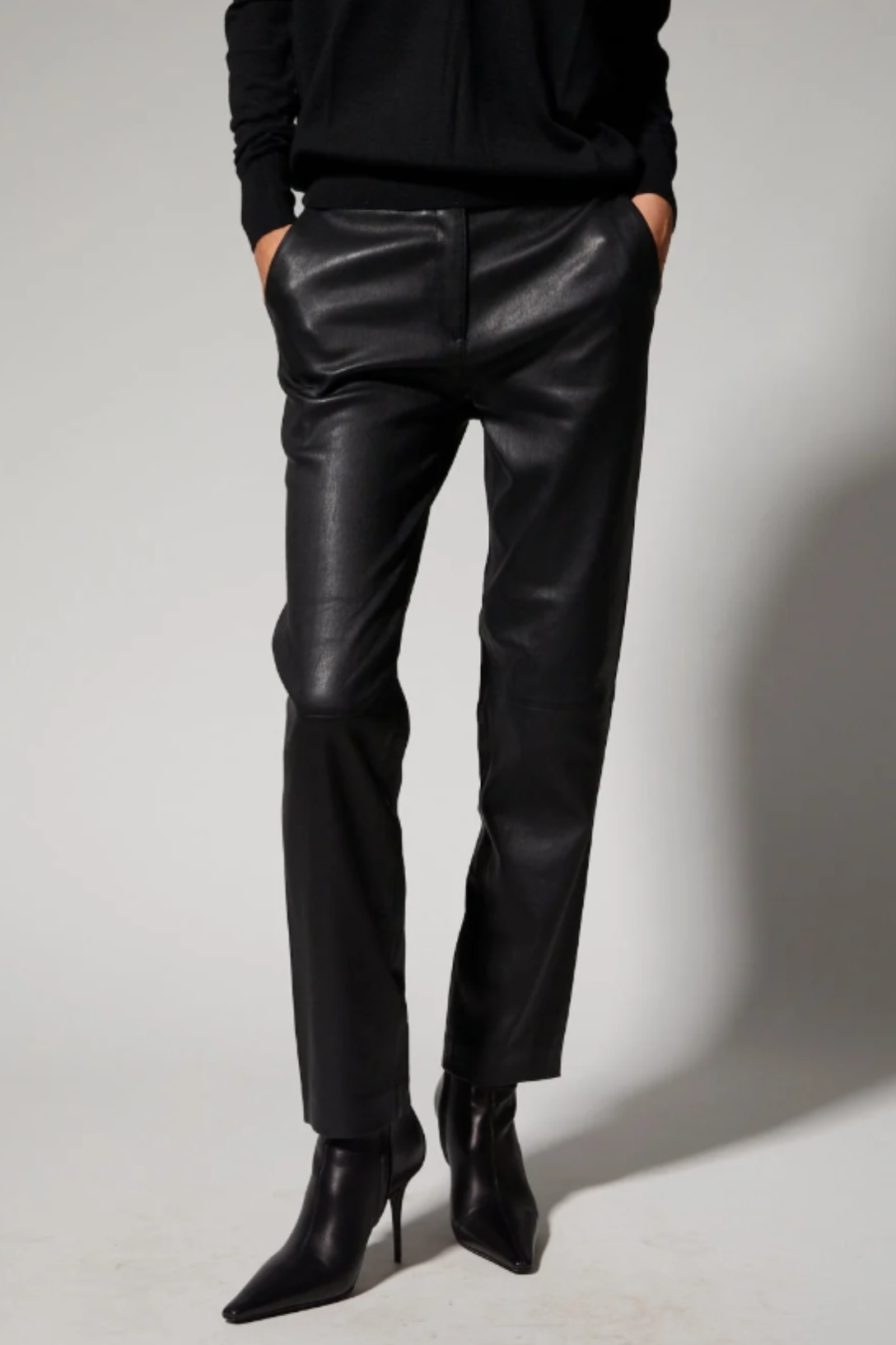 A luxurious take on a classic cigarette pant, made in signature stretch-leather for an effortlessly chic and wearable look. Featuring five functional pockets, belt loops and an ultra-sleek fit, these pants strike the perfect balance of modern and edgy. With a wide range of styling options, these pair well with heeled boots or sneakers, a cashmere sweater or a leather top.