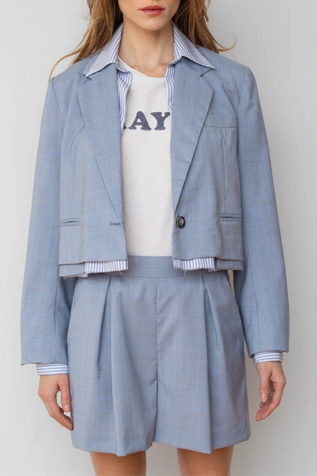 Engineered for a life in motion, the Bar Blazer brings a reactive, street-style spontaneity to modern tailoring. This transformative piece juxtaposes a structural wool shell with a crisp, detachable cotton poplin underlayer that mimics the look of a layered shirt. Its cropped fit eliminates traditional bulk, offering a look of tomboyish nonchalance that thrives in the city’s restless push and pull.
