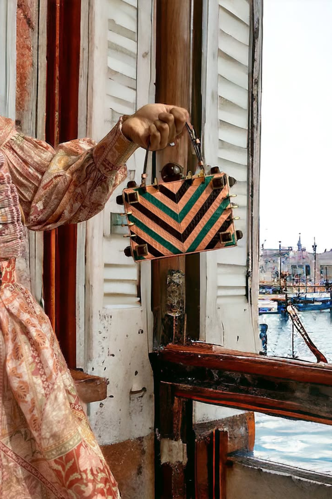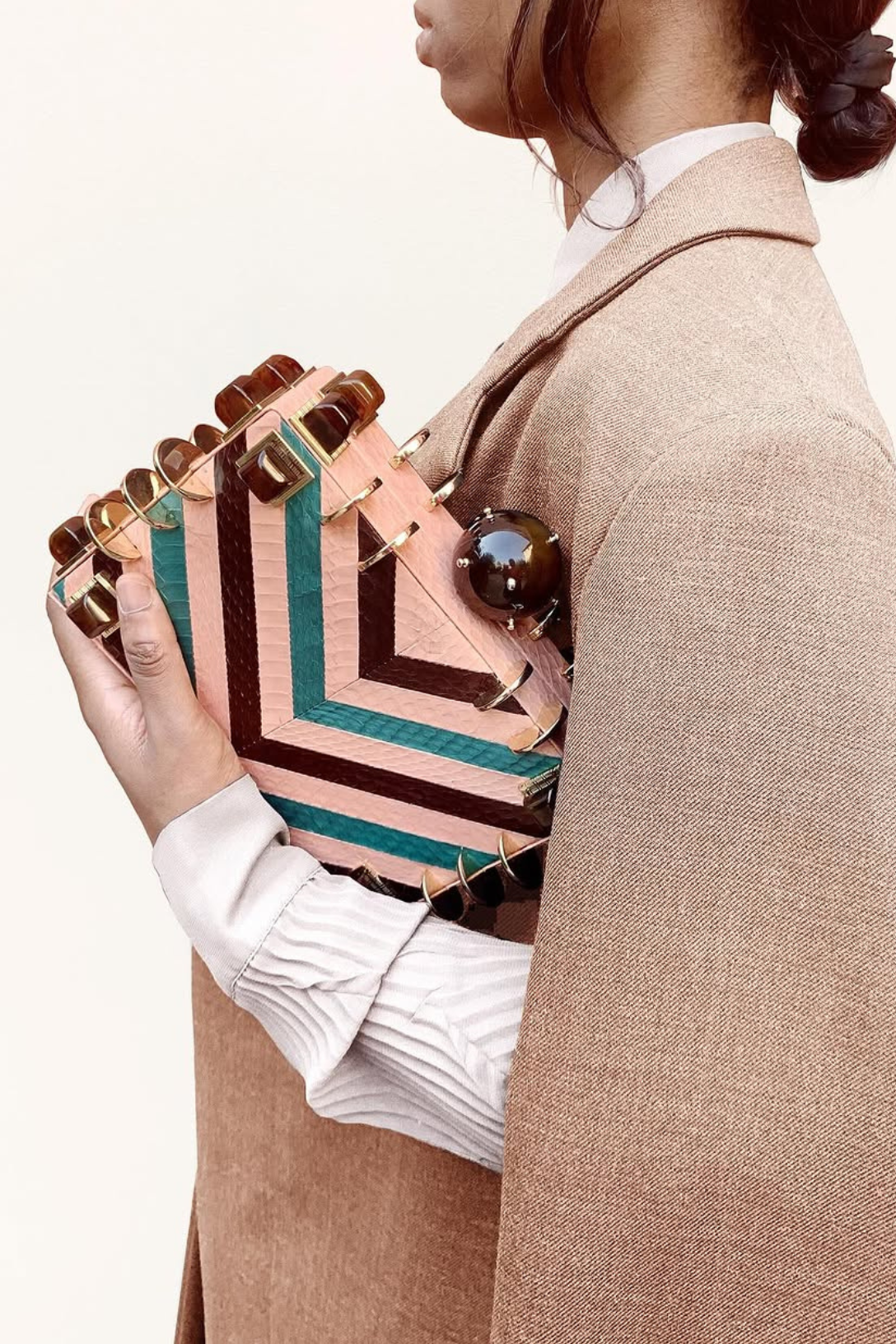 The interior is as refined as the exterior, with satin lining and a convenient inside pocket. With this geometric beauty, you not only make a bold fashion statement but also enjoy the perfect blend of artistry and practicality.