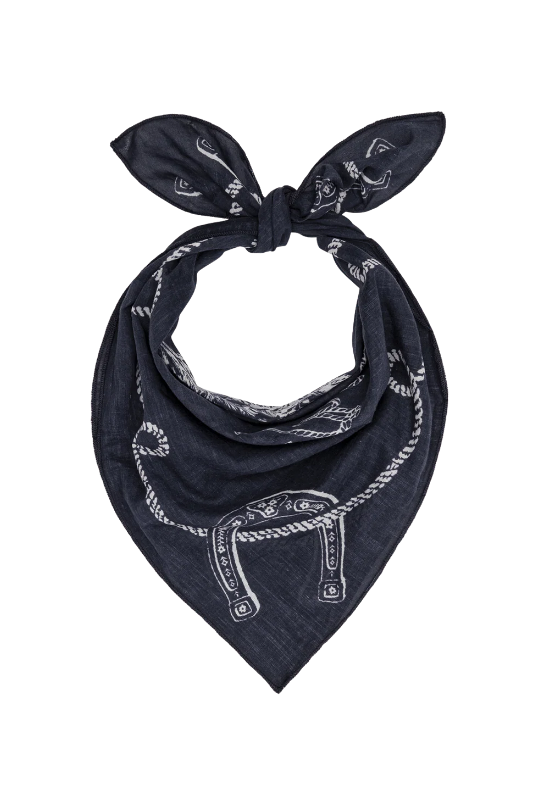 Made in collaboration with Stetson, whose legacy of authentic craftsmanship has defined the spirit of the West since 1865, and inspired by cherished vintage handkerchiefs, the Stetson Western Bandana features a classic Western horse head medallion framed by an intricate rope-and-horseshoe border and signature typography. Crafted from lightweight cotton voile, it has an ultra-soft hand and a lived-in wash for an effortless, worn feel. Updated proportions make it slightly longer for easy styling around the neck, in the hair, or tied to a bag—a timeless accessory that pays homage to classic Western bandanas.