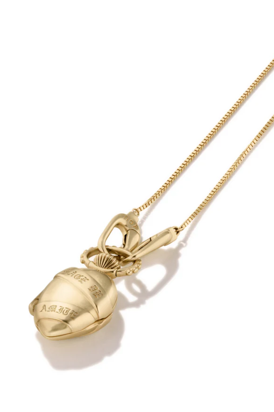 - Ribbon detail wraps around the exterior with the engraved phrase "GAGE DE MON AMITIE" (Token of my friendship)