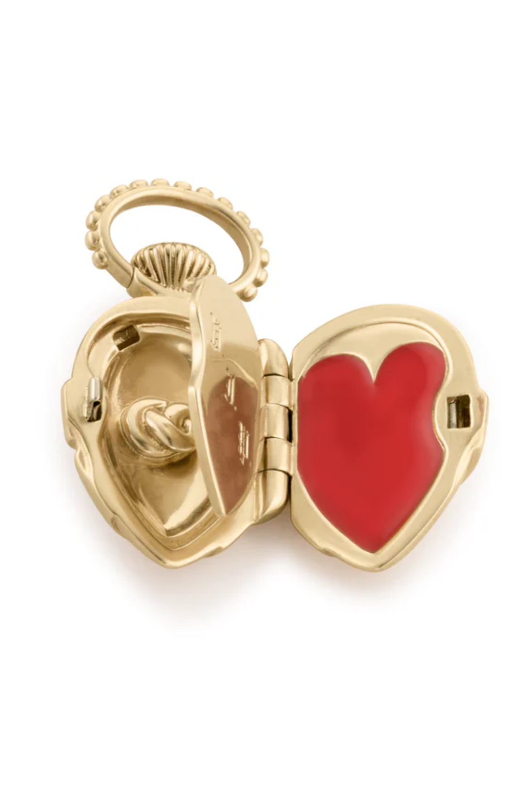 - Interior hand painted enamel: red heart