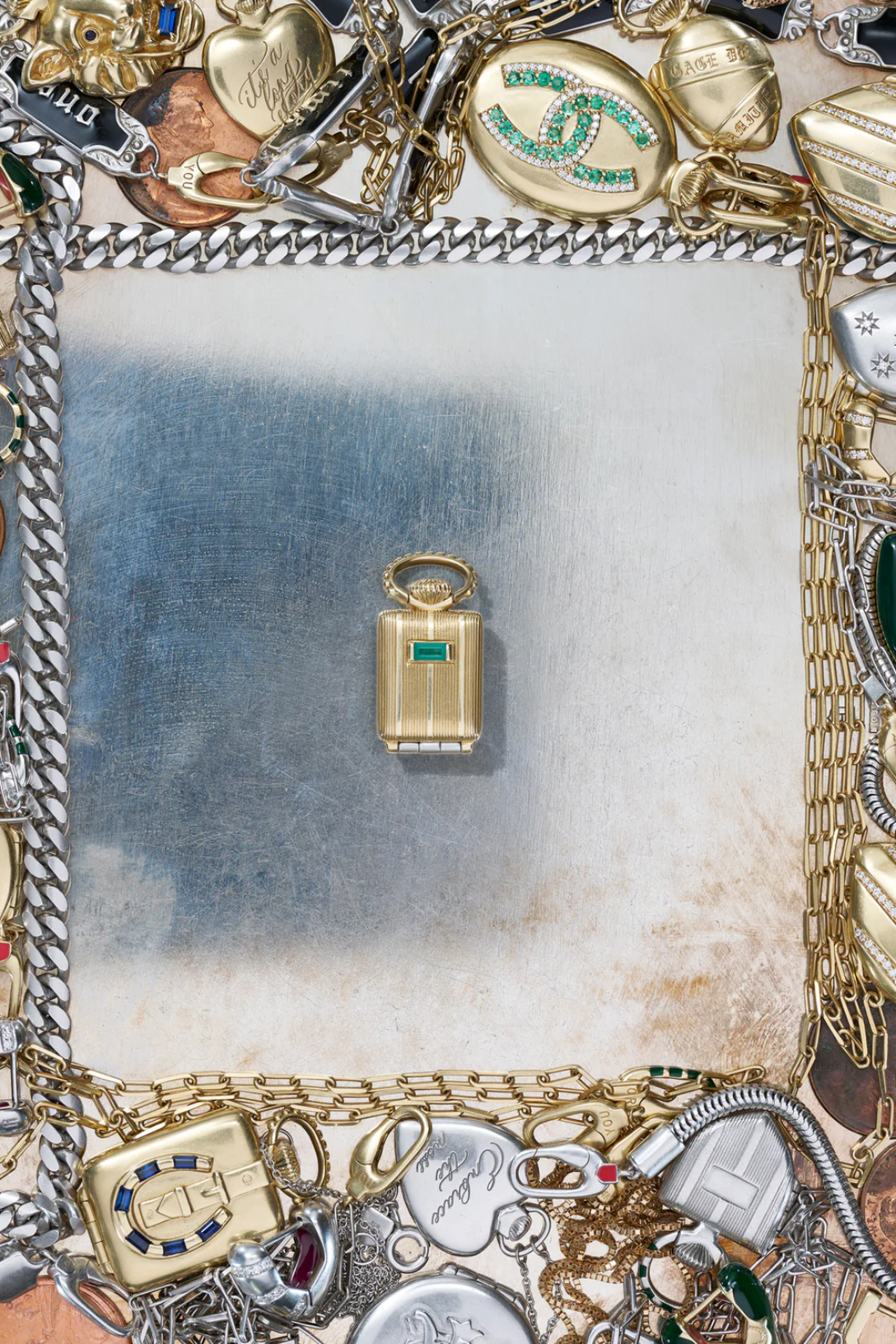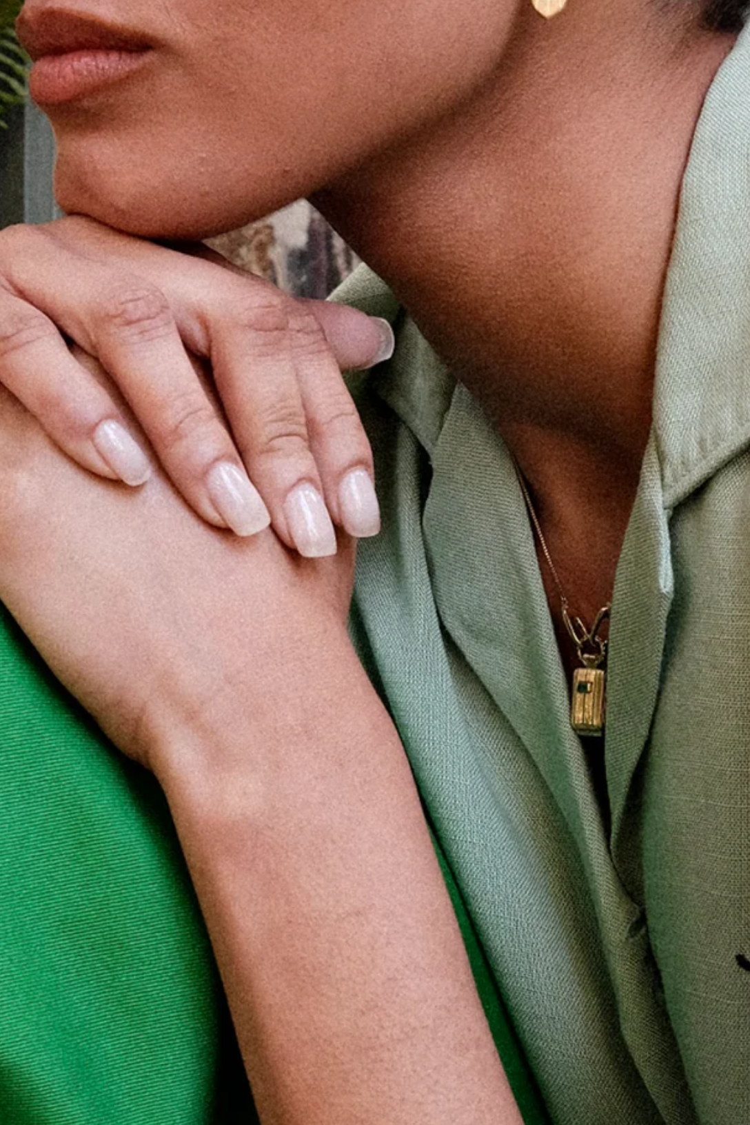 - Side 1: 14K Recycled Gold in semi shiny finish with emerald baguette