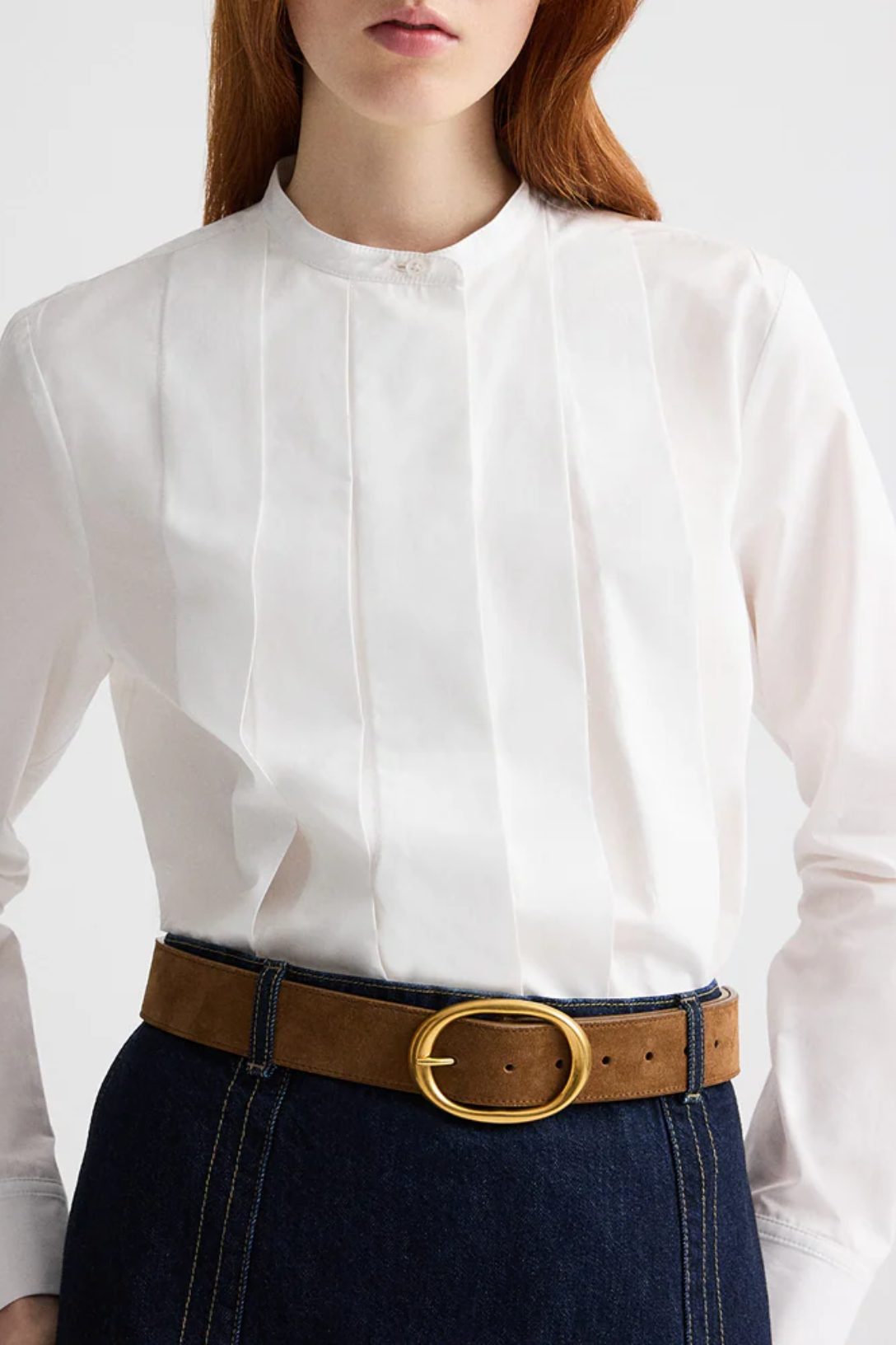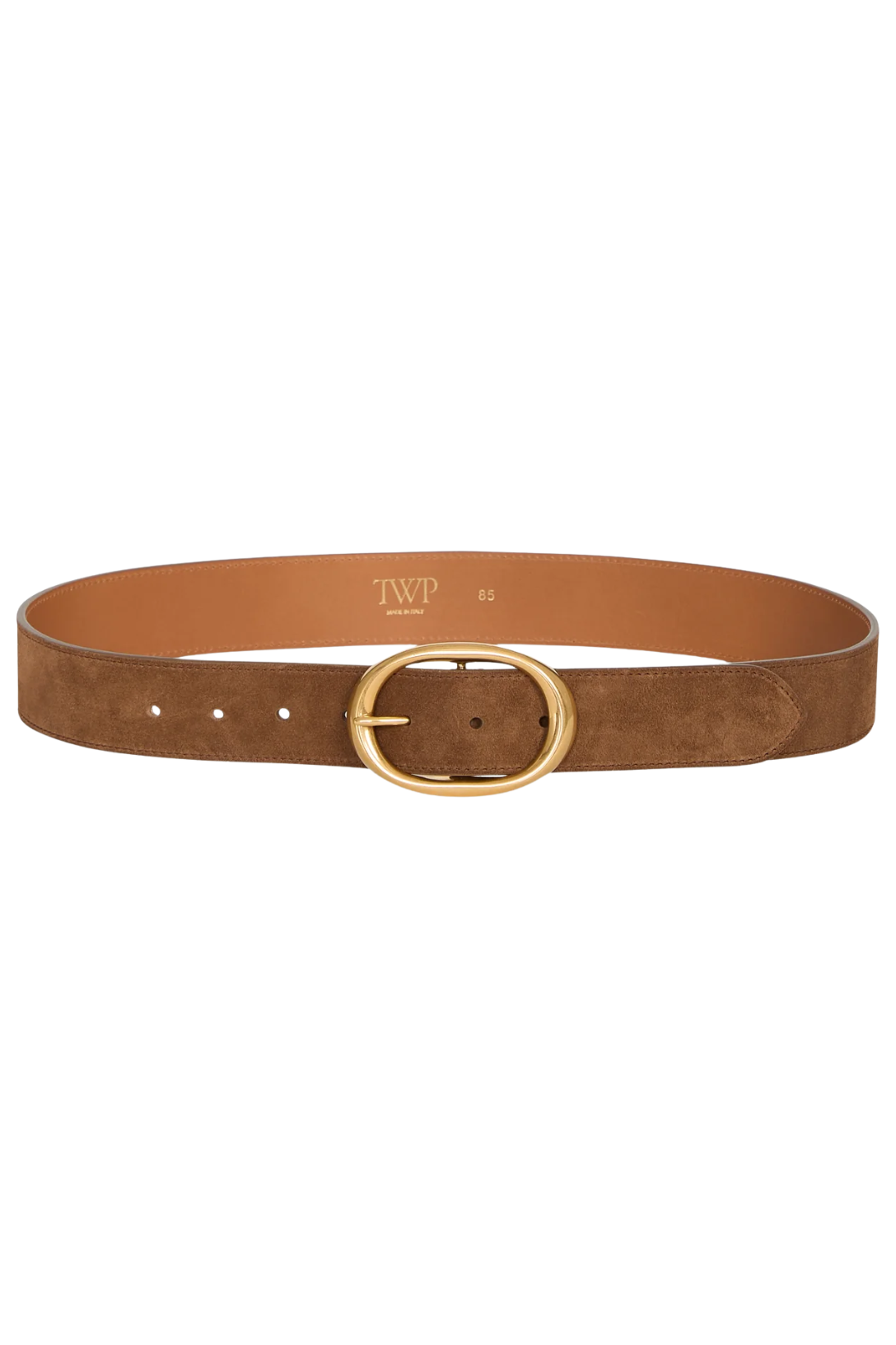 Wide belt in luxe Spanish cowhide leather and suede that burnishes and softens over time. The Wide belt has a strap that will contour to the natural shape of your body with use. Accented with a custom molded brass buckle, coated with an antique gold finish. Made in Italy.
