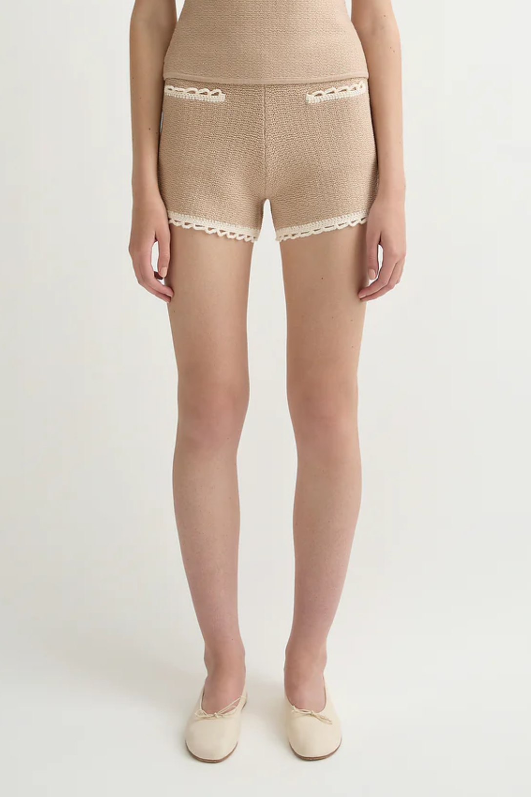 Crafted from soft knit, the Willow Shorts are traced with contrast scallop detailing. Designed to sit high on the waist, they feature front patch pockets. Style yours with the matching Willow Top and Willow Cardigan.