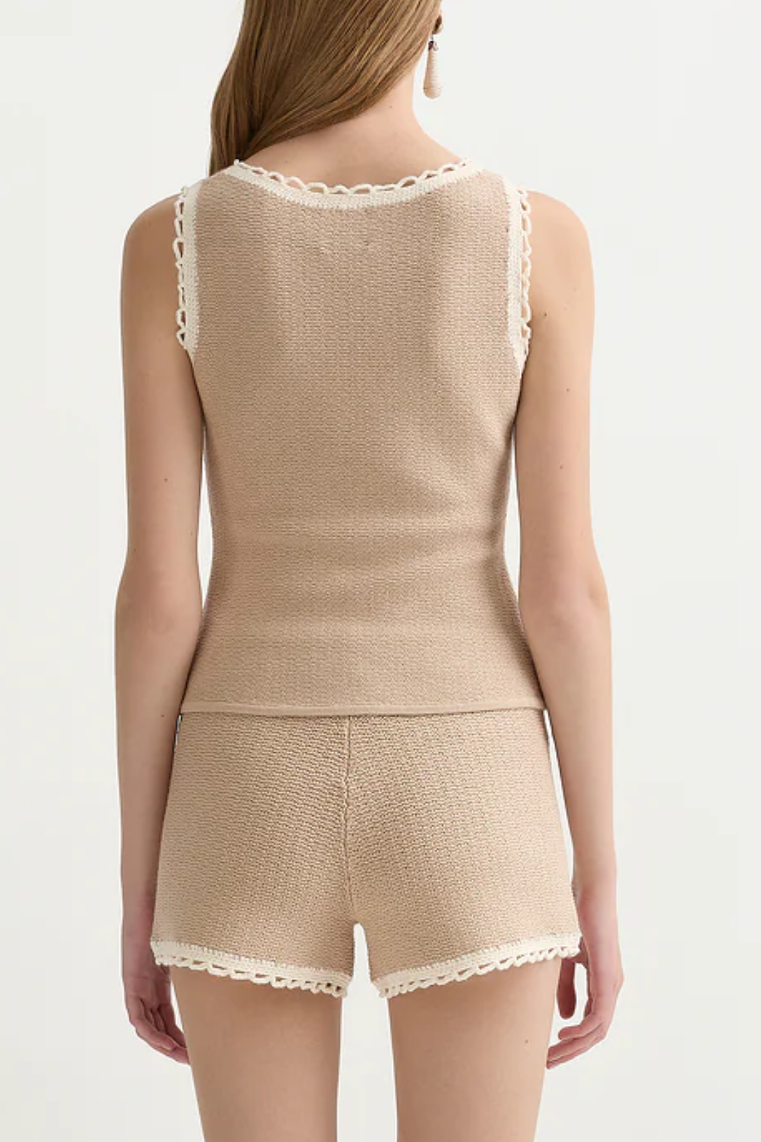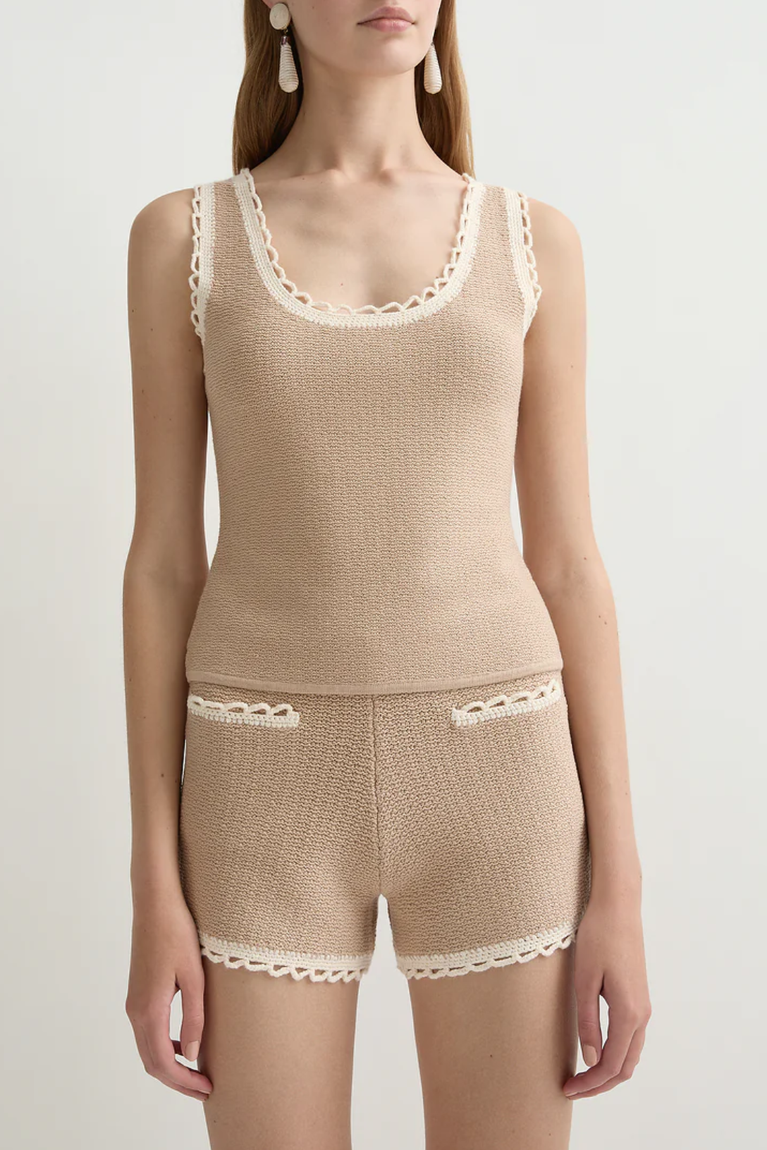 Crafted from soft knit, the Willow Top is traced with contrast scallop detailing. It features a scoop neckline and falls to the waist. Style yours with the matching Willow Cardigan and Willow Shorts.