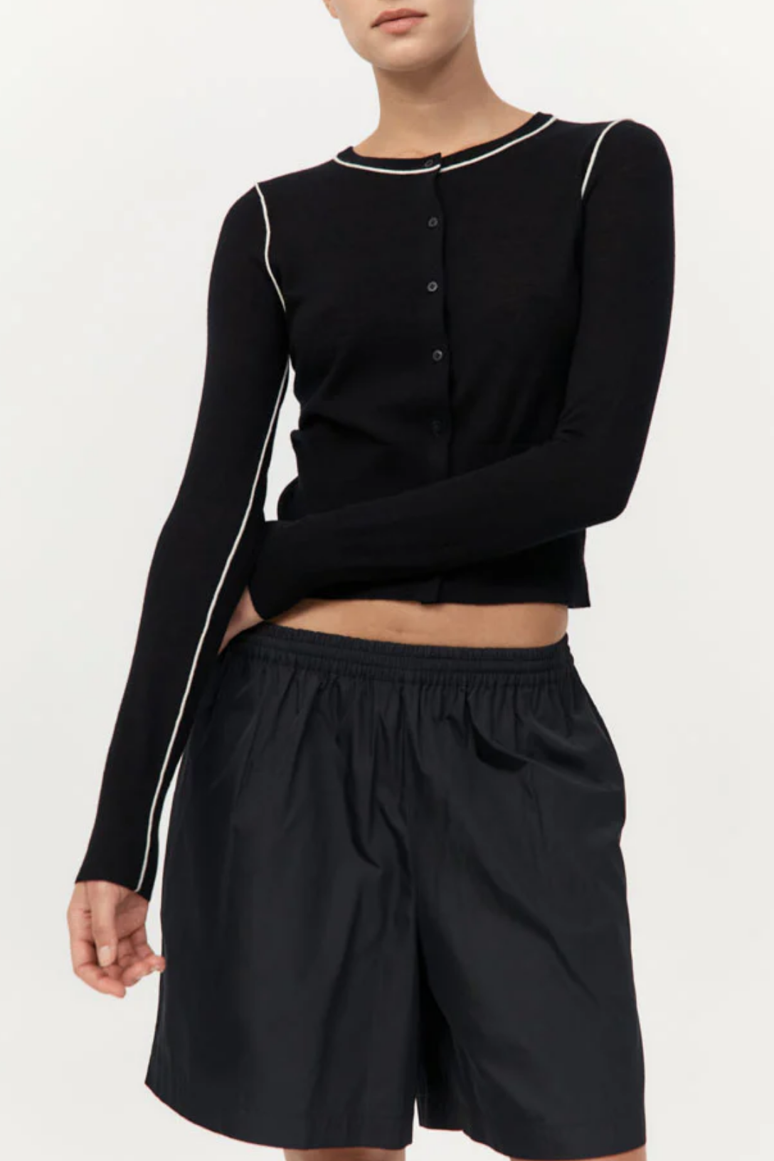 Crafted from 100% responsibly sourced Merino wool, the Wool Fine Line Cardigan features a classic crew neckline, long sleeves and a button-down front. Ribbed cuffs, hem and neckline provide subtle structure, while fine contrast piping adds a refined, modern touch.